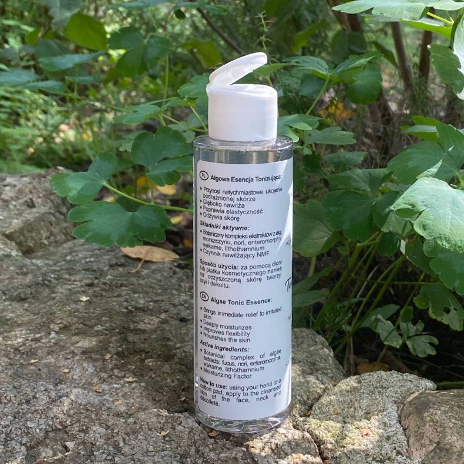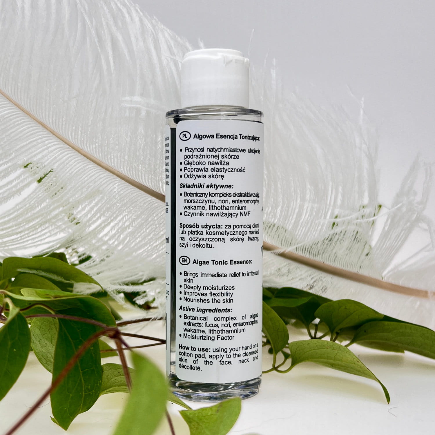 Algowa esencja tonizująca to kosmetyk, który łączy w sobie działanie intensywnie nawilżające, odżywcze, tonizujące oraz energetyzujące skórę. Zawiera wysokie stężenia ekstraktu z 5 alg oraz czynnika nawilżającego NMF, które są cennymi źródłami witamin, antyoksydantów, protein i lipidów. Dzięki temu połączeniu, po użyciu esencji, skóra staje się miękka, elastyczna, ukojona i pełna witalności. Formuła Algowej esencji tonizującej została zaprojektowana tak, aby wspierać barierę hydrolipidową skóry i wzmacniać jej funkcje ochronne. Polecamy osobom o skórze suchej, odwodnionej, wrażliwej, naczynkowej oraz skłonnej do podrażnień. Esencję docenili również Panowie, u których występuje podrażnienie po goleniu.