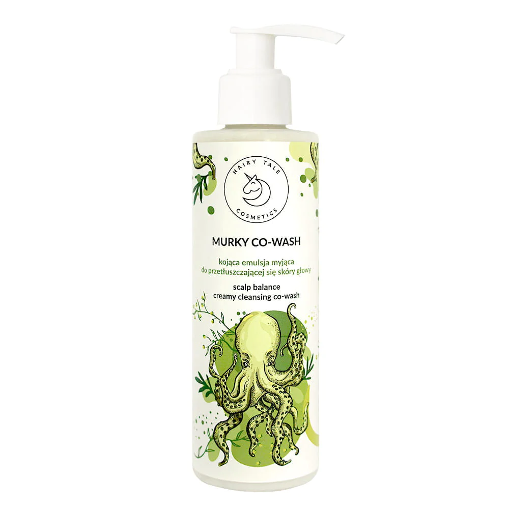 HAIRY TALE Murky Co-Wash – Kojąca emulsja myjąca do przetłuszczającej się skóry głowy zawiera olej z czarnuszki, ekstrakt z piołunu, pochodną kwasu glicyretynowego z lukrecji oraz azeloglicynę. Dodatkowo zawiera argininę, niacynamid, ekstrakt z drożdży oraz biotynę. Receptura została opracowana z myślą o łagodnym oczyszczeniu i uregulowaniu pracy gruczołów łojowych problematycznej skóry oraz zniwelowaniu tendencji do przesuszenia, swędzenia i podrażnień.